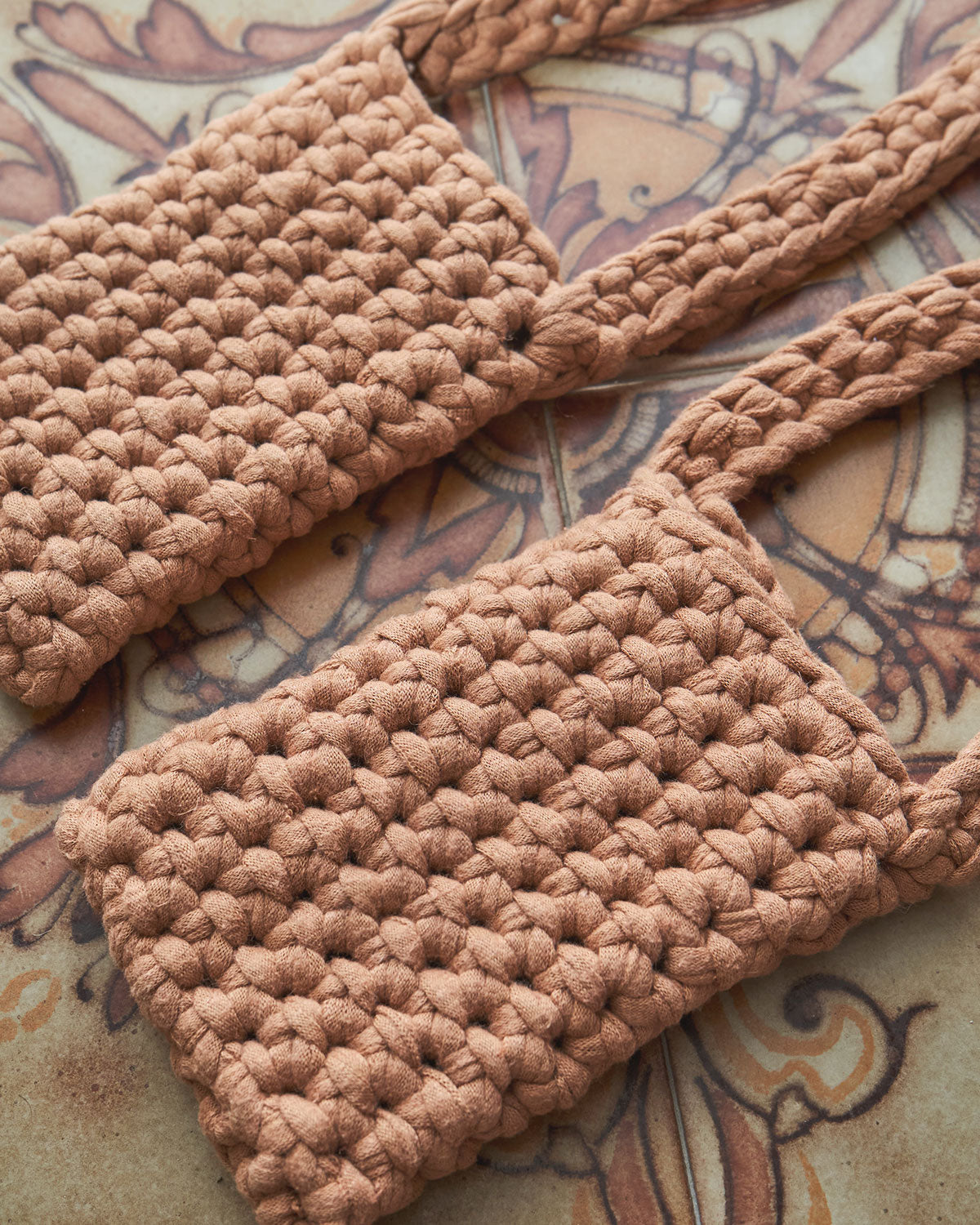Our staple Crochet Bag classic is back. Inspired by the colours of Nonna’s House. This chunky hand crocheted phone bag is unisex and made in the UK from recycled T-shirt yarn. Yarn is 100% recycled textile made of superior quality recycled textile selvedges and remnants. Each bag is handmade so no two are the same. Fits most phone models. Bag is sturdy with stretchy straps.