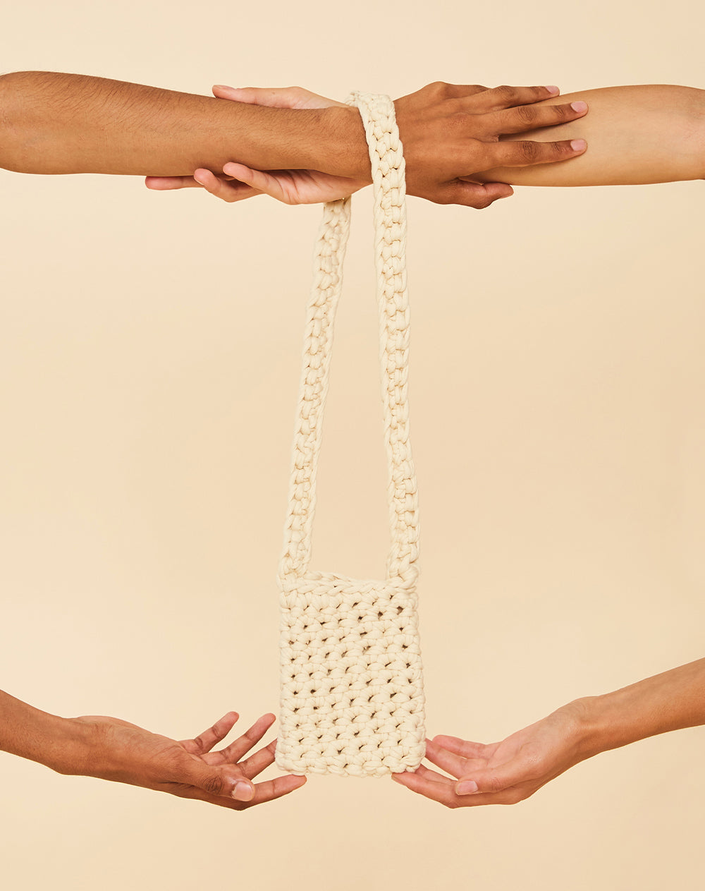 Inspired by the vibrant colours of Italian gelato. This chunky hand crocheted phone bag is unisex and made in the UK from recycled T-shirt yarn. Yarn is 100% recycled textile made of superior quality recycled textile selvedges and remnants. Each bag is handmade so no two are the same. Fits most phone models. Bag is sturdy with stretchy straps.
