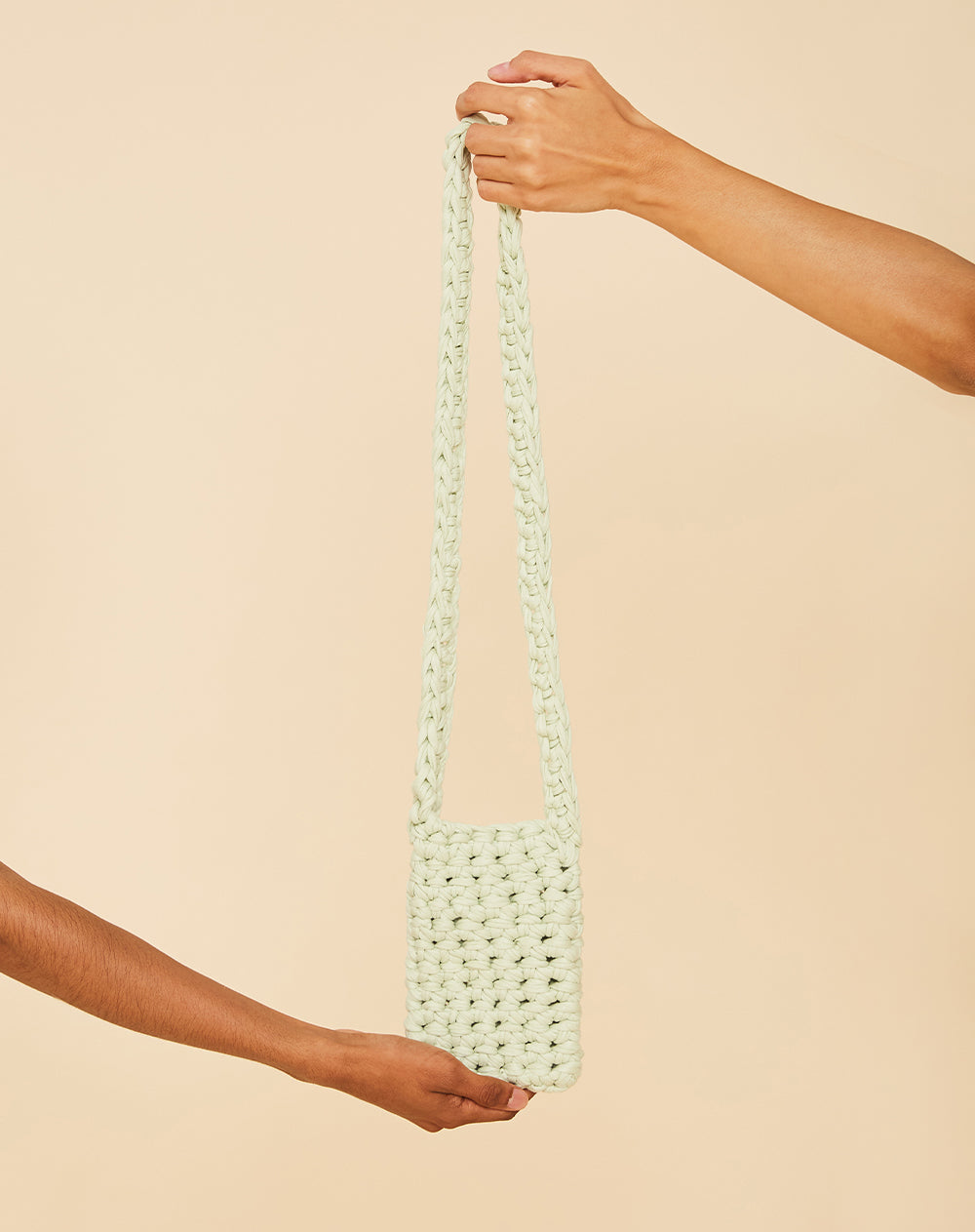 Inspired by the vibrant colours of Italian gelato. This chunky hand crocheted phone bag is unisex and made in the UK from recycled T-shirt yarn. Yarn is 100% recycled textile made of superior quality recycled textile selvedges and remnants. Each bag is handmade so no two are the same. Fits most phone models. Bag is sturdy with stretchy straps.