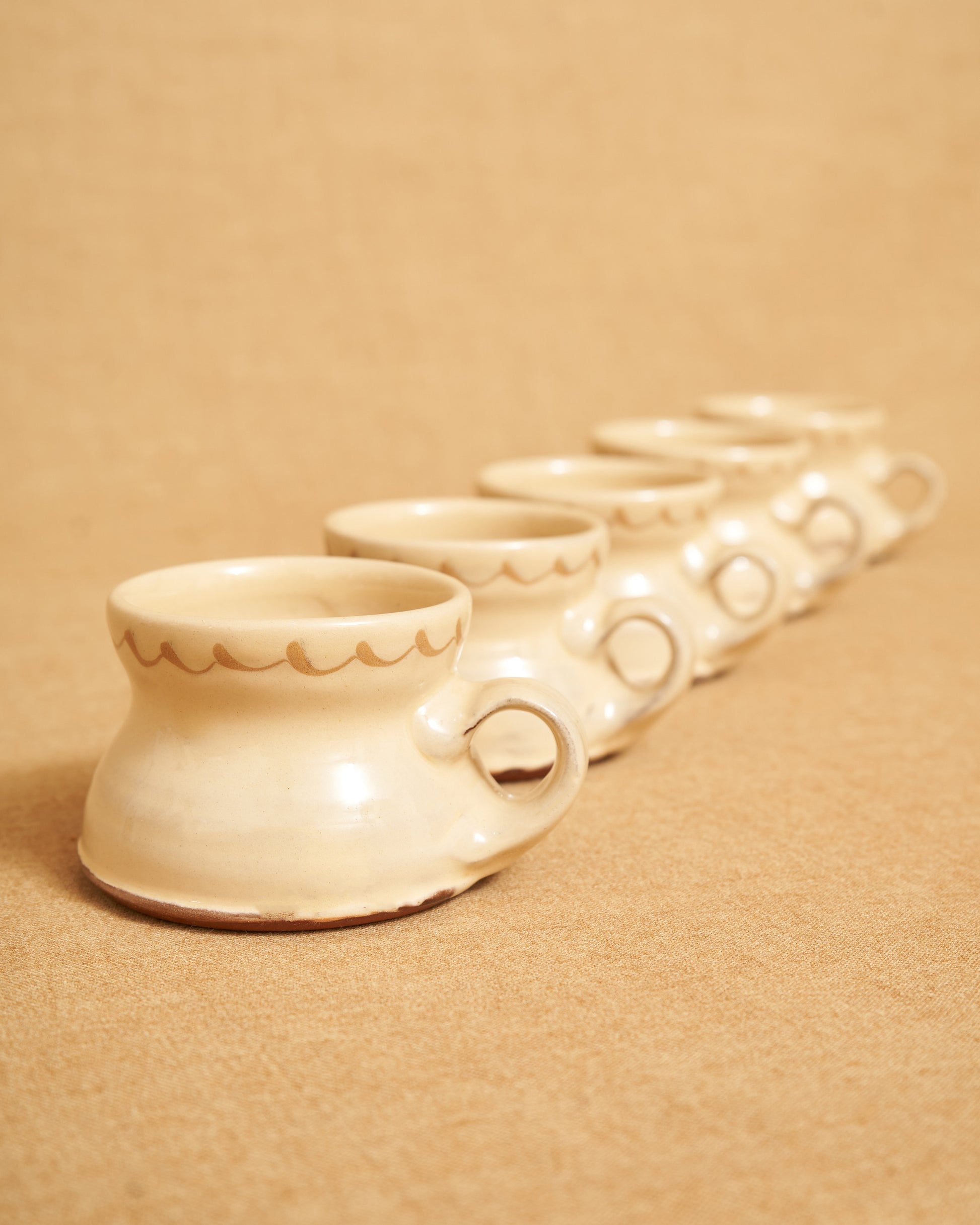 Hand-thrown low and wide using Terracotta, a natural earthenware clay with wild local clay for the slip decoration, using a slip trail technique to create the detail. It has been low fired which uses less heat and electric, a more traditional method. Our Cuore cup is perfect for many types of hot beverages, Caffe Latte, Americano, Tea... Our favourite is Cappuccino.