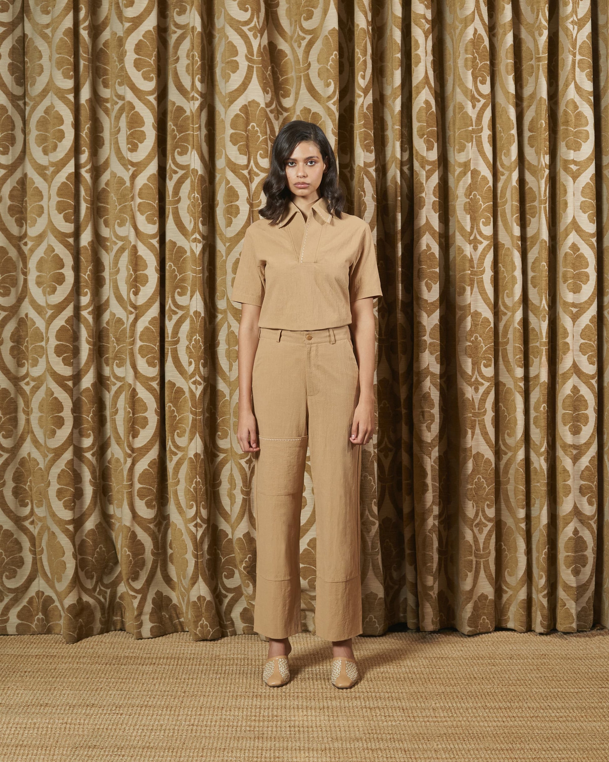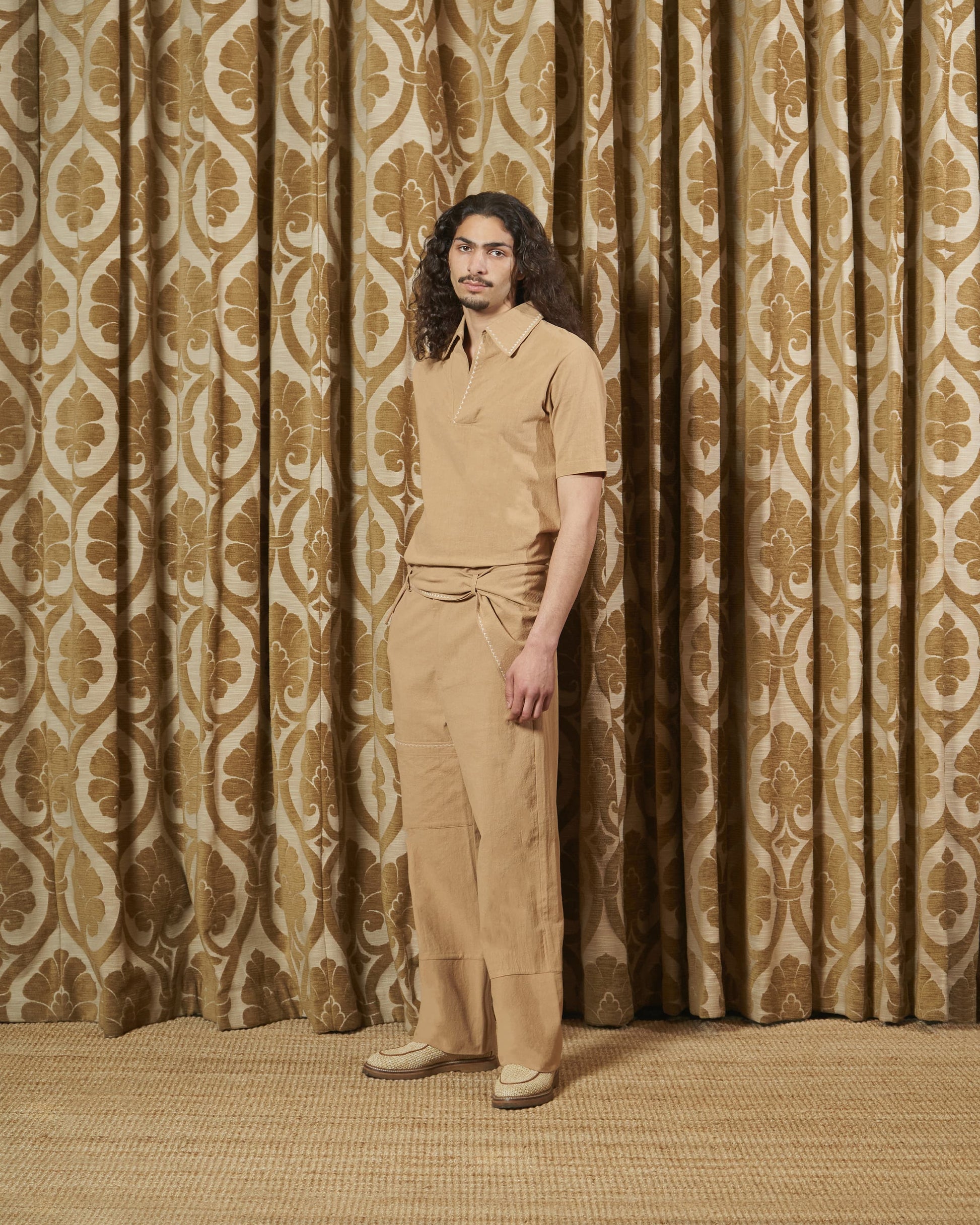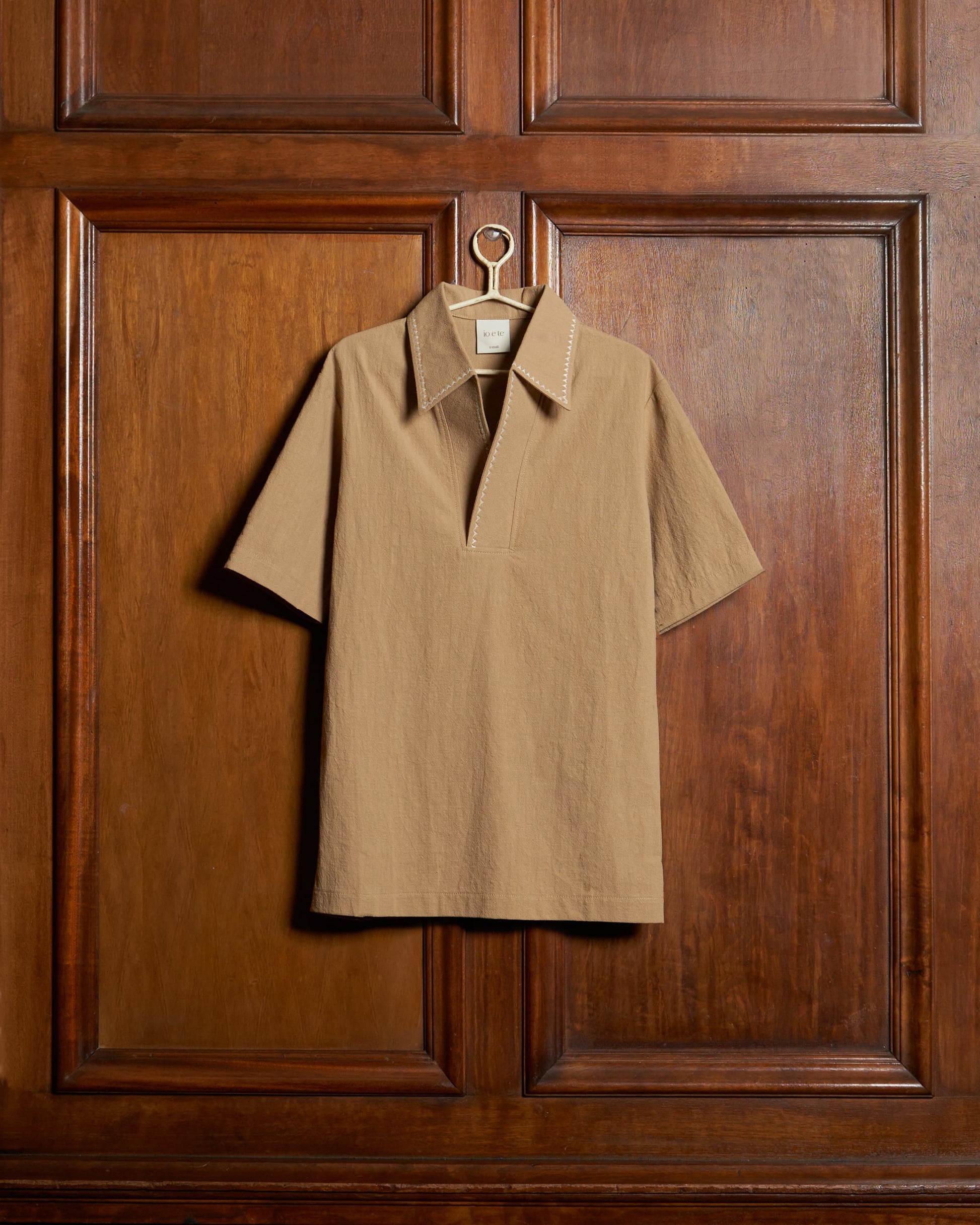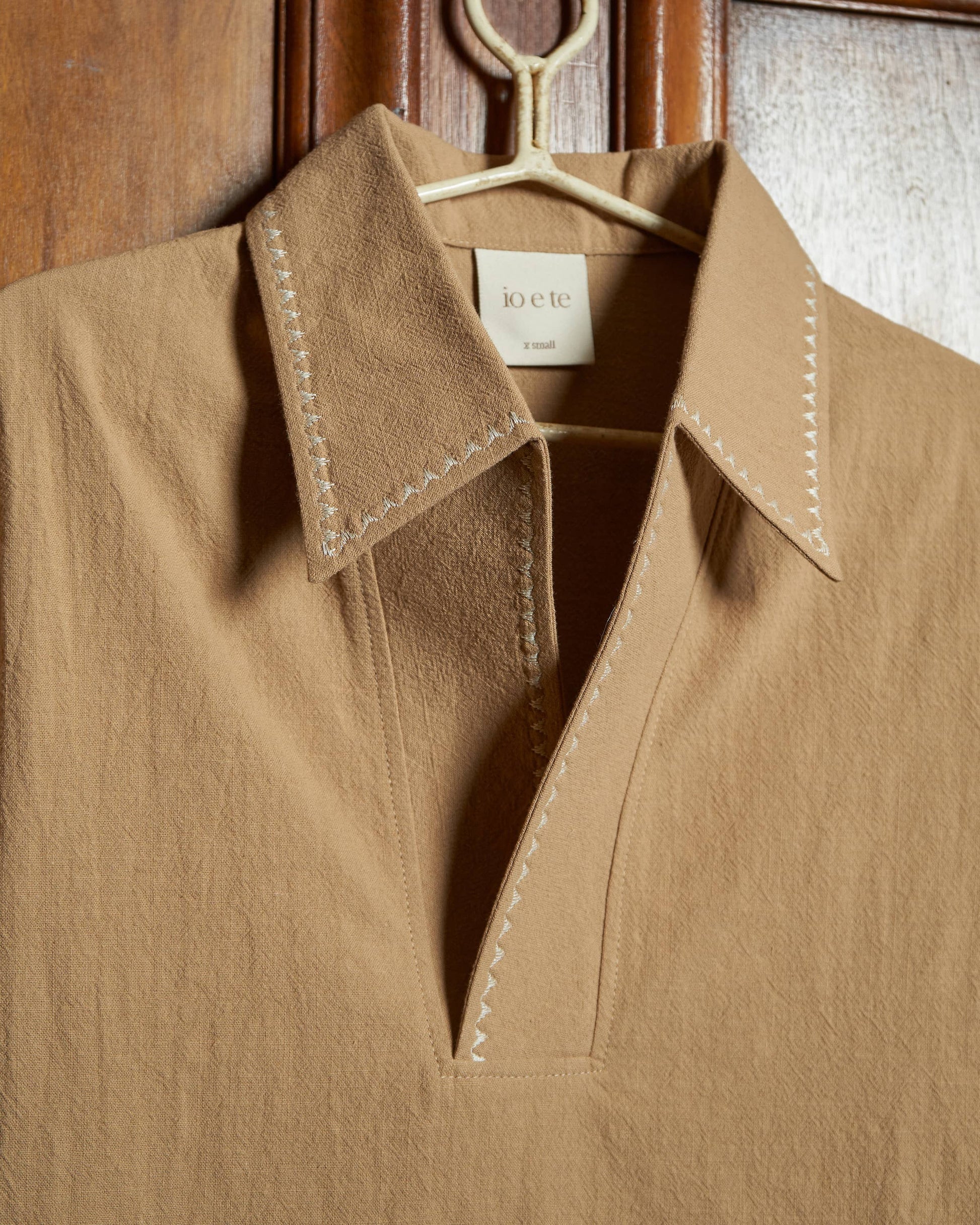 Our Cuore Polo is a simple yet stylish piece with a beautiful high structured collar, bordered with intricate embroidery detail in contrast stitching. Vintage inspired by true Seventies Italian style, the perfect statement piece to wear alone or layered under our Cuore Vest.