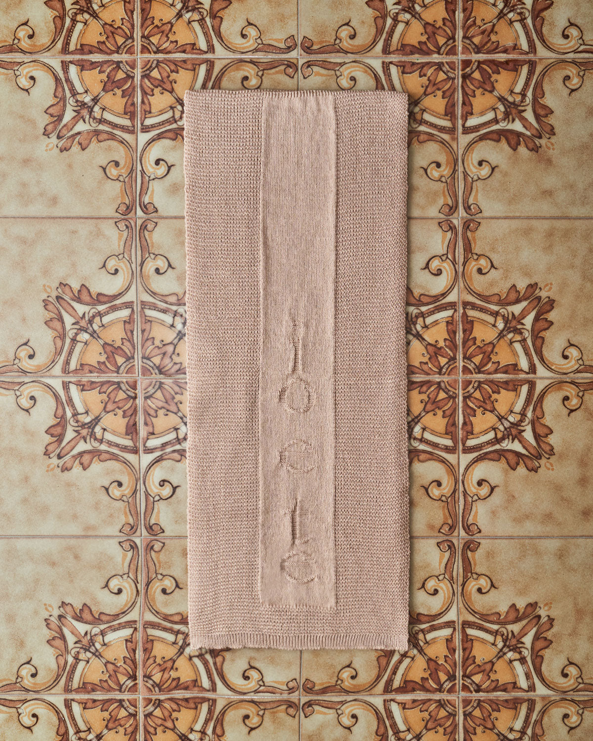 The ‘me and you’ scarf. Knitted texture scarf with pearl knit branding. The perfect accessory to stay warm and cosy. Matches the clothing pieces to finish the full look. Design and colour palette inspired by the interiors of Nonna’s house.