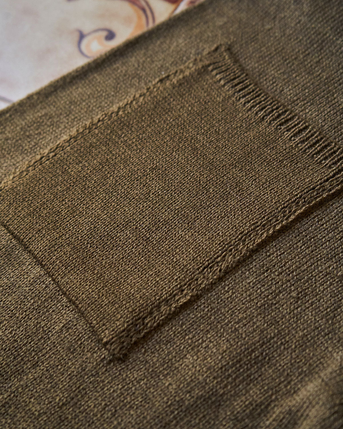 Knitted textured high waisted trouser with pearl knit cuff design. Features a front knitted pocket and drawstring tie waist. Design and colour palette inspired by the interiors of Nonna’s house.