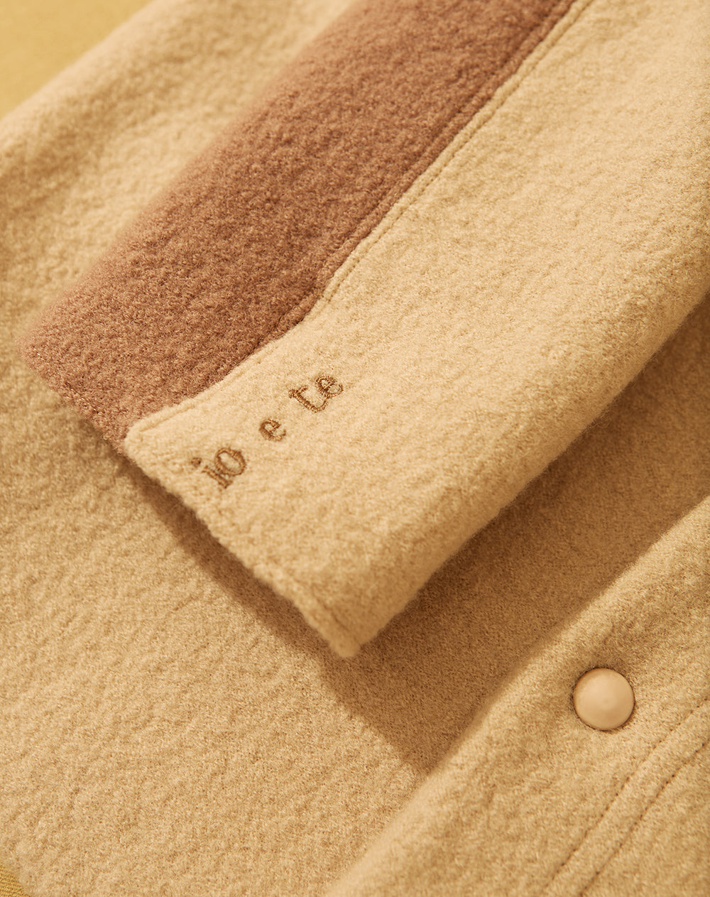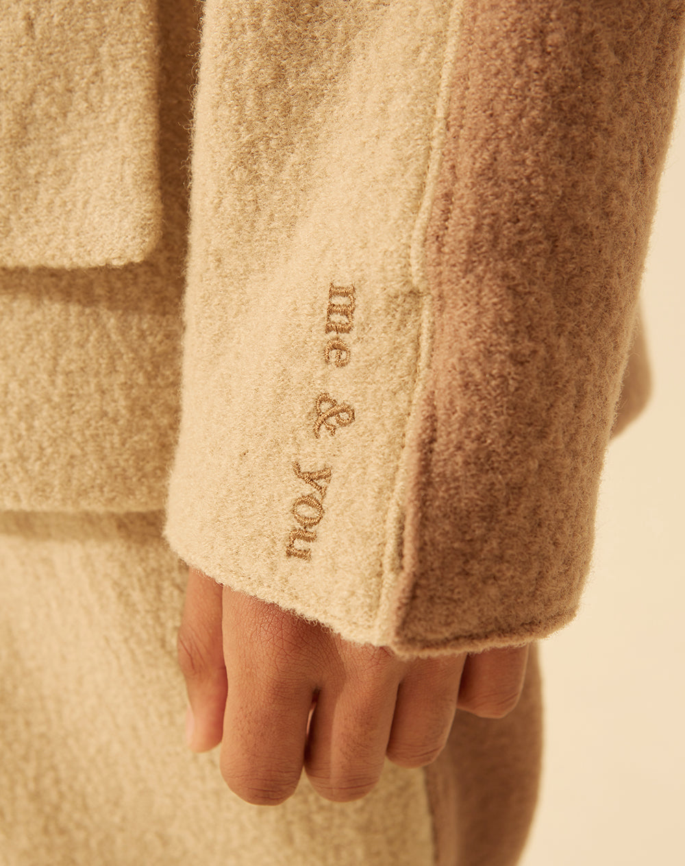 Two toned split Jacket. Made from 100% natural fibre boiled wool and 100% eco lining fabric. Unisex oversized Jacket features one large outer pocket, popper fastening with sleeve embroidery detail. Please handle with care when opening, the wool is a delicate natural material. Dry clean only, always read the care label for washing instructions. If looked after well, it will last you a lifetime. Sizing is based on a unisex fit therefore it is naturally oversized.