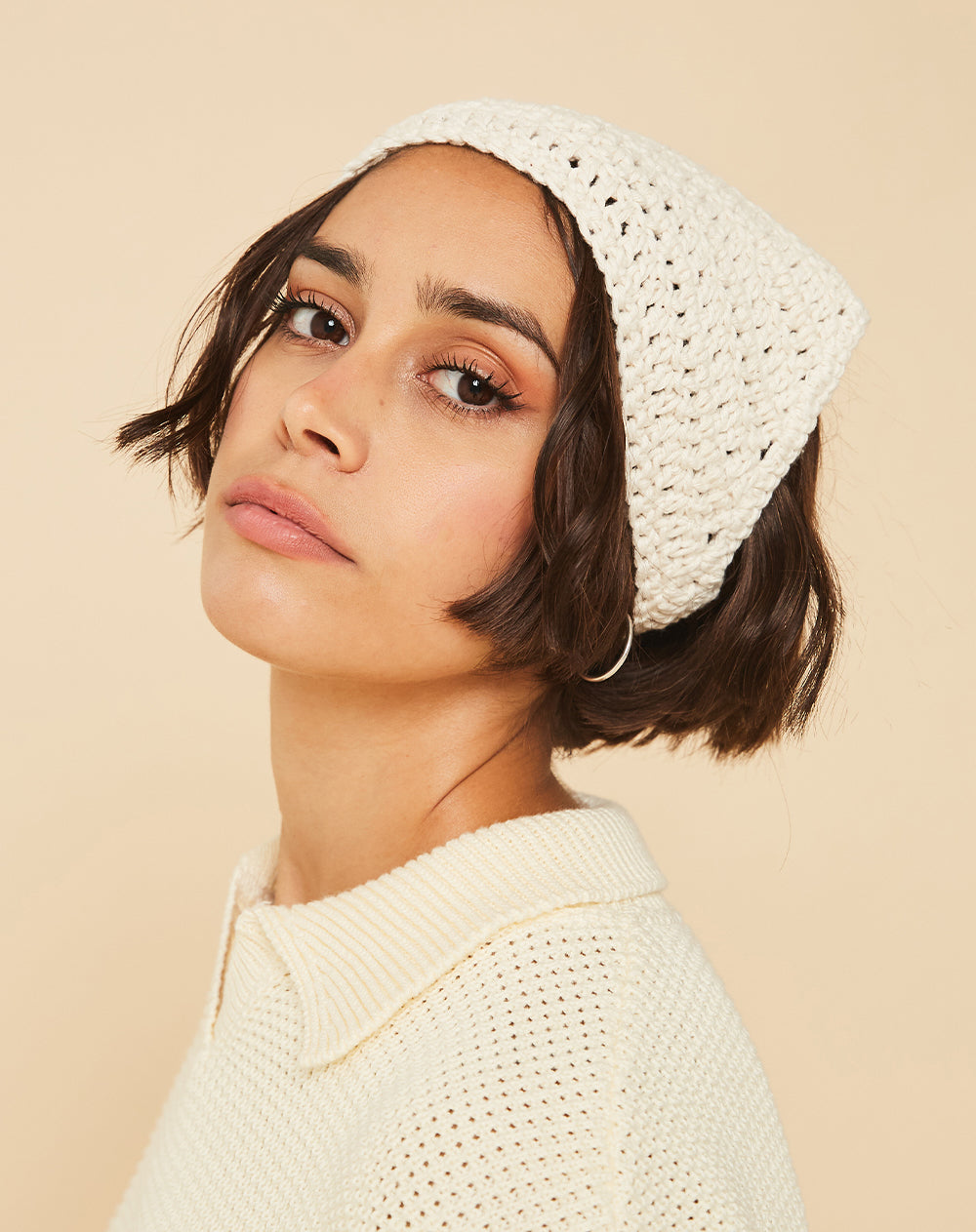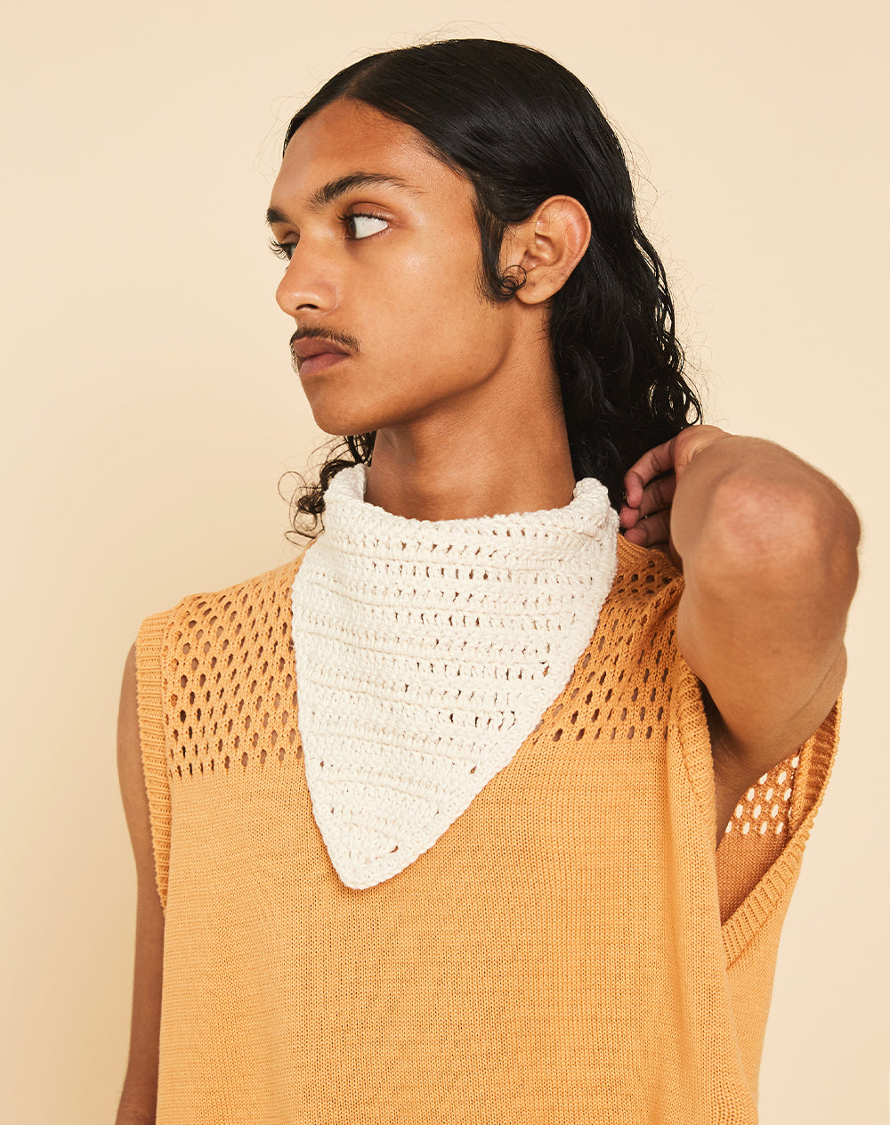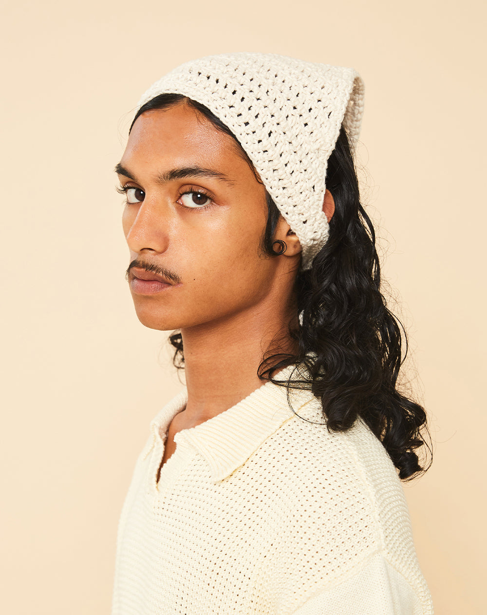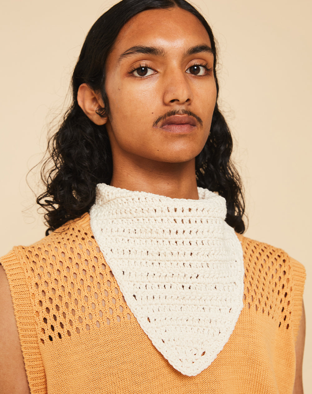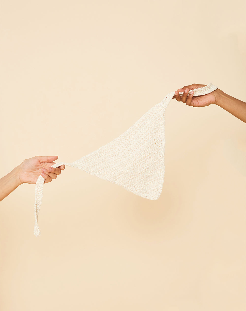 Inspired by Italian Nonnas (Grandmas) this unisex hand crocheted headscarf is made in the UK, using textile waste and residues transformed into 100% recycled and ecological premium cotton yarn. Headscarf is very soft and versatile, can be worn in multiple ways as a neck scarf. The yarn is produced in a sustainable way respecting nature, each piece is handmade so sizes may vary. Can be washed cold with similar colours, thus suitable for everyday use.