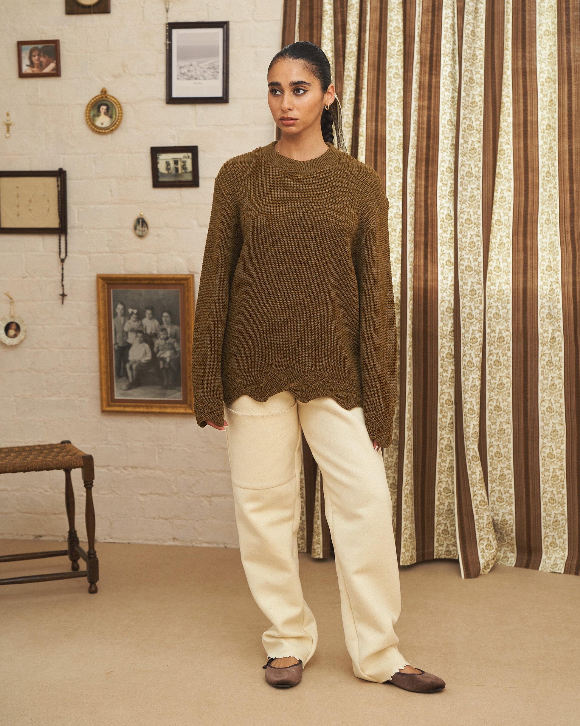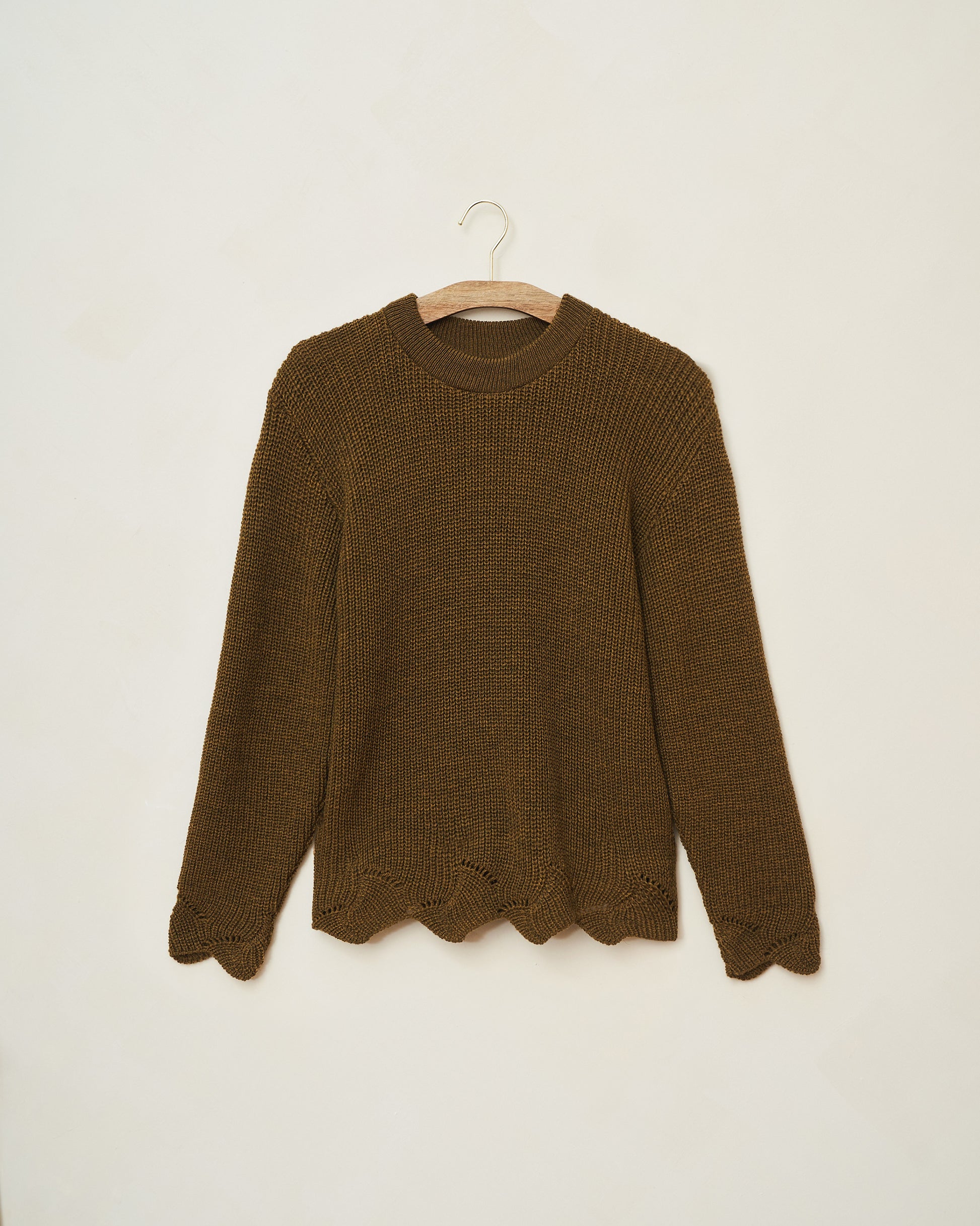 Our Onda Knit Jumper is made from 100% Merino Wool, featuring a ribbed collar and scalloped edge design on the sleeves and hem to represent the waves. Onda means wave in Italian. Our Jumper is the perfect chunky knit which can be worn alone or as a layering piece. Matches perfectly with the io e te Knit Scarf.
