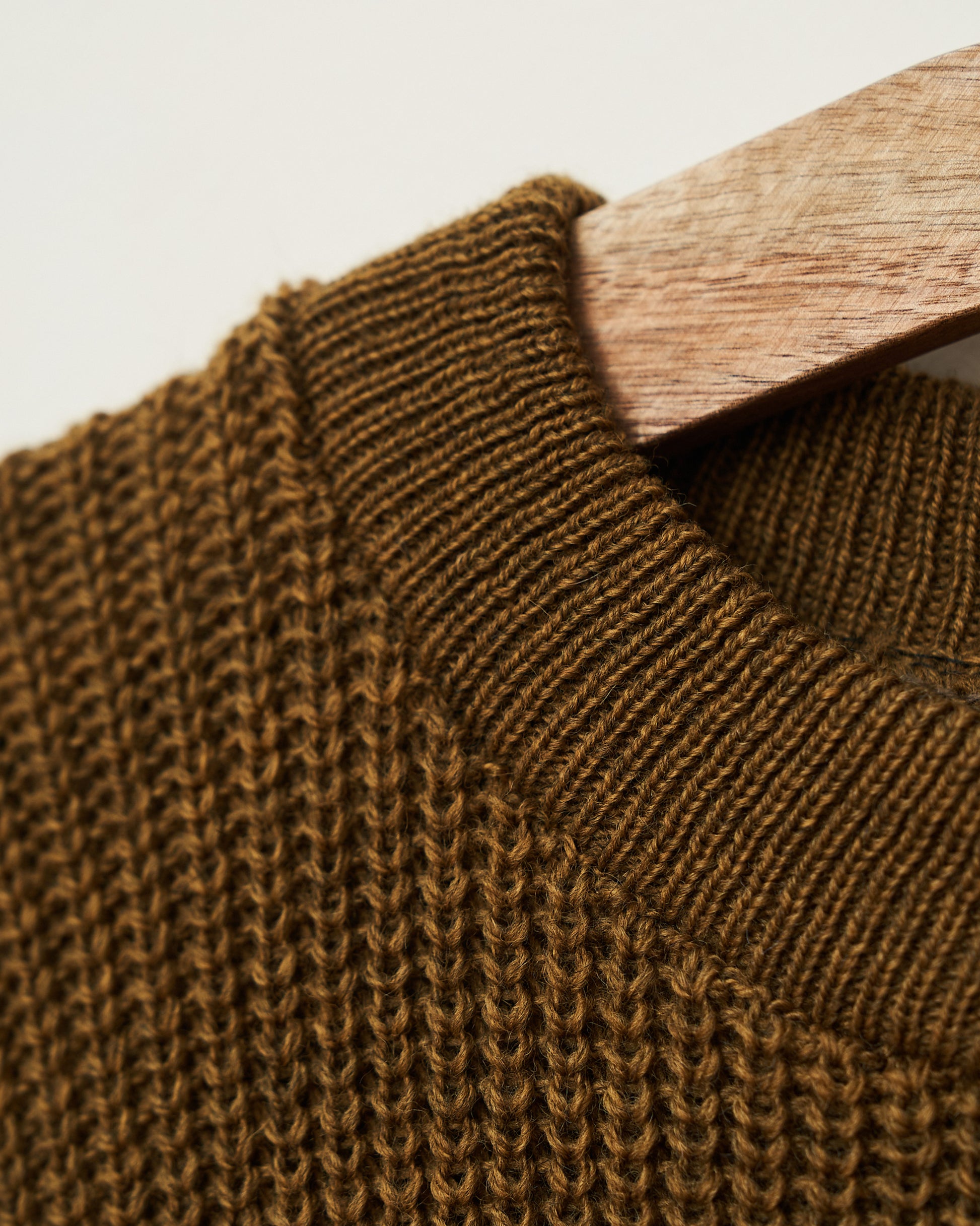 Please note our Merino wool knit has natural stretch and give. Please store folded, hanging can cause misshaping.