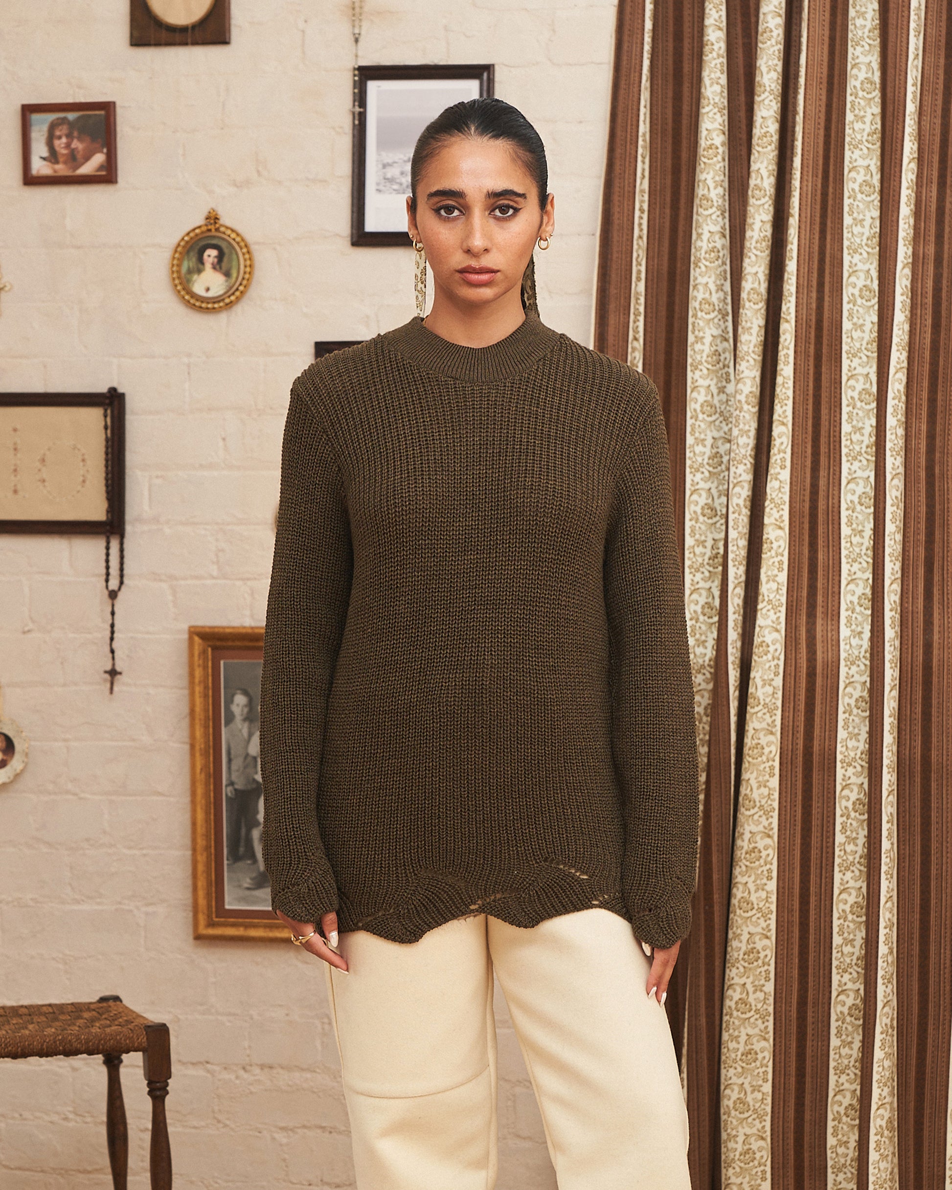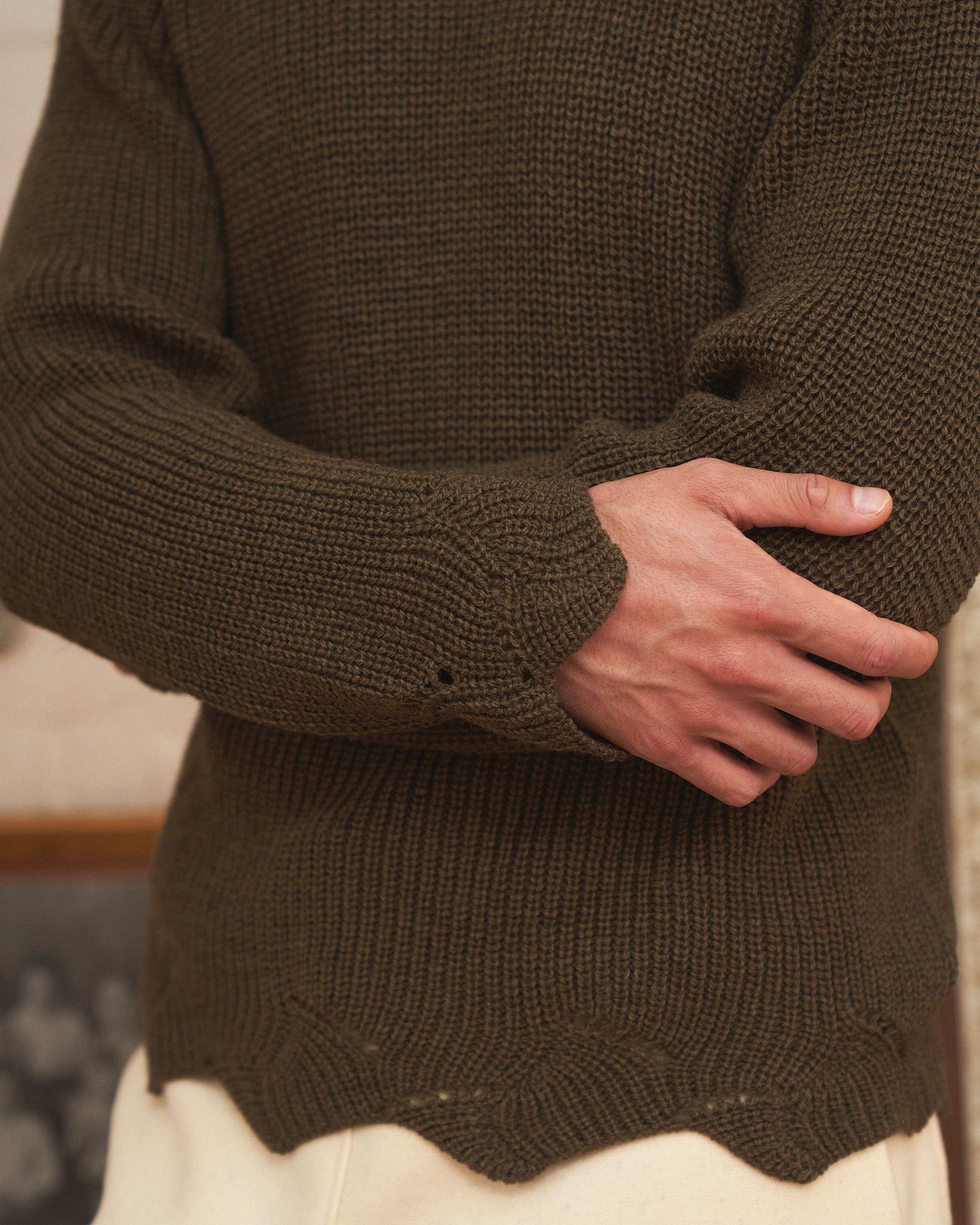 Our Onda Knit Jumper is made from 100% Merino Wool, featuring a ribbed collar and scalloped edge design on the sleeves and hem to represent the waves. Onda means wave in Italian. Our Jumper is the perfect chunky knit which can be worn alone or as a layering piece. Matches perfectly with the io e te Knit Scarf.