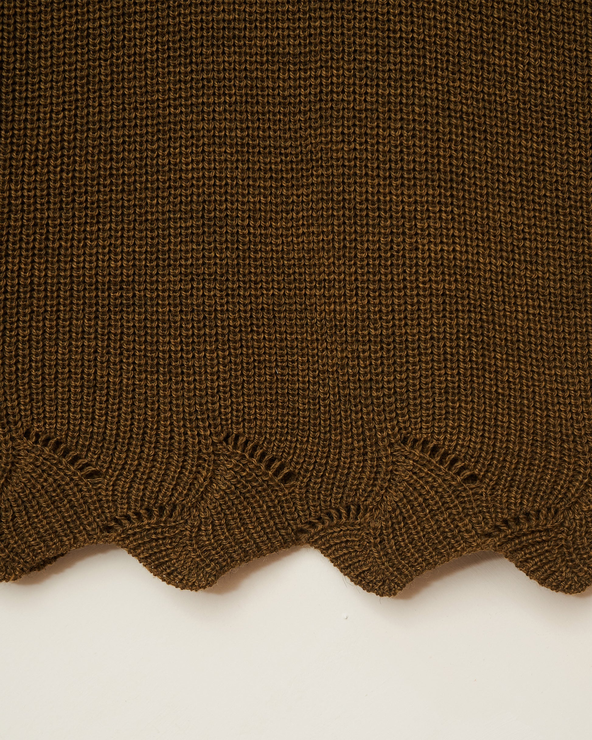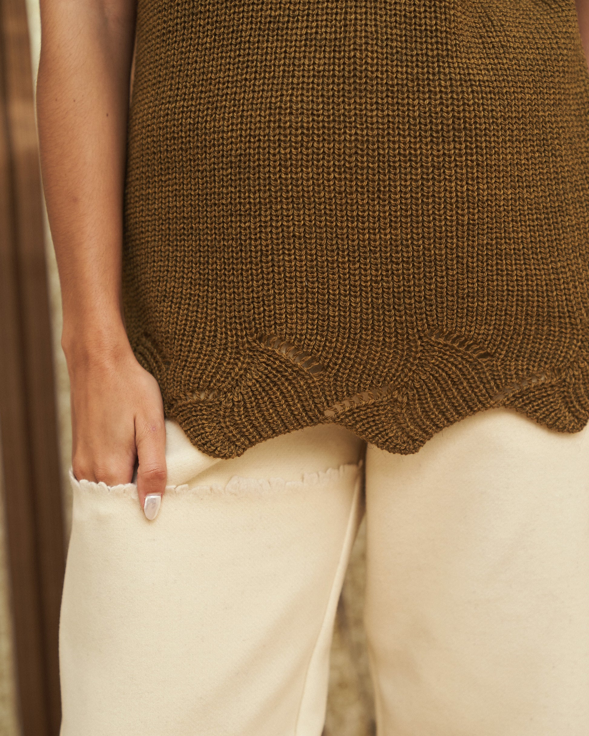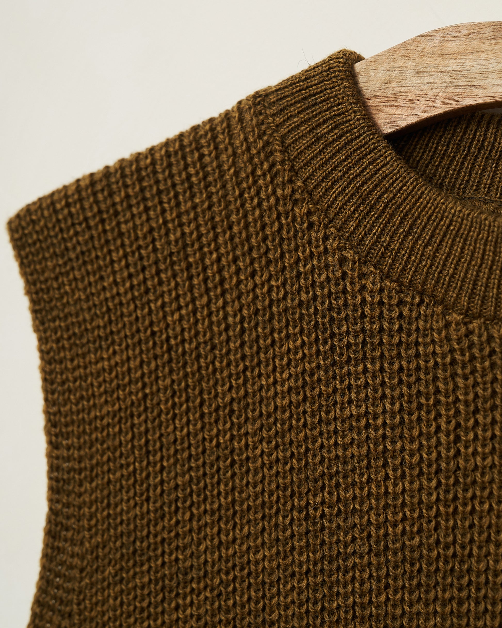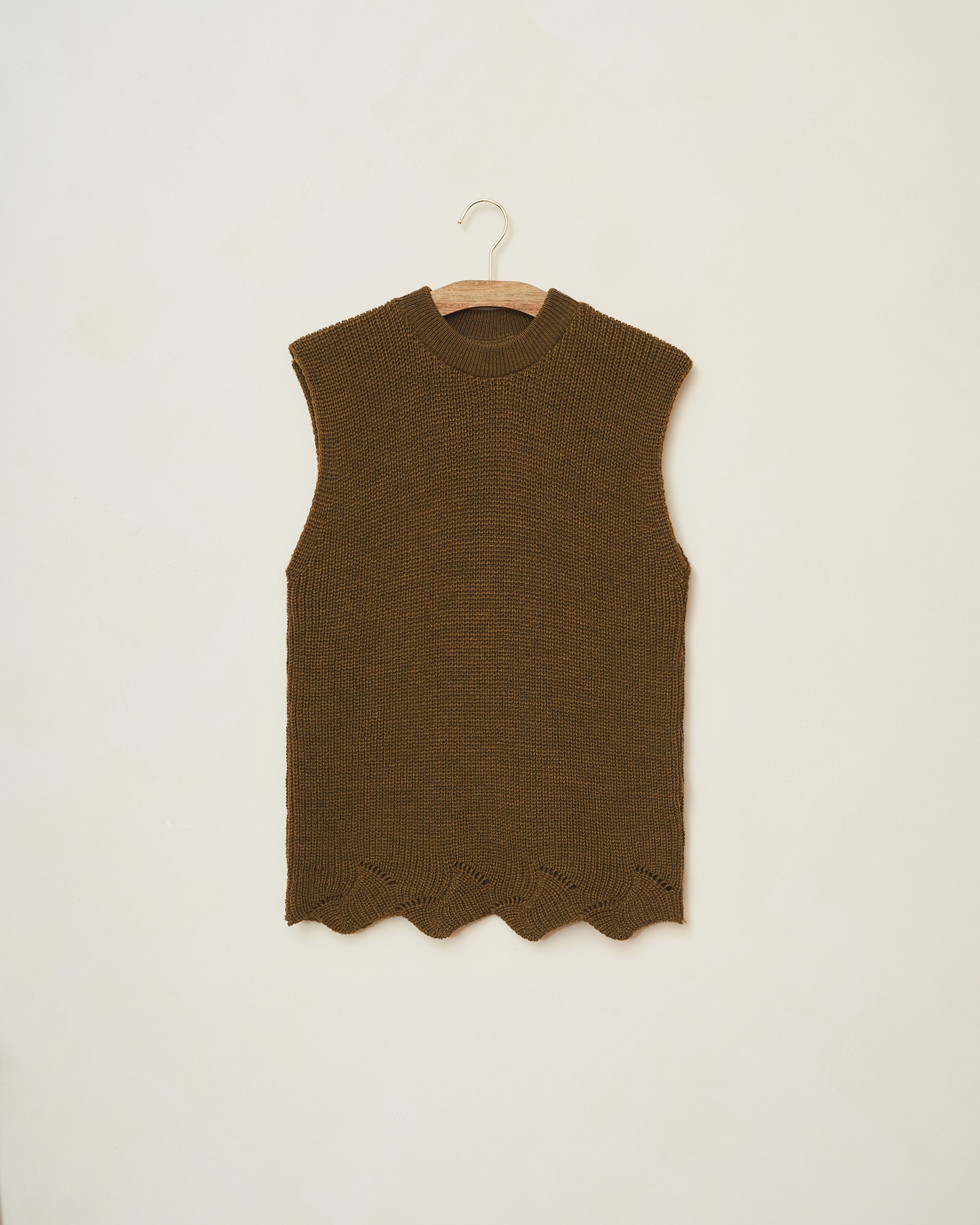 Our Onda Knit Vest made from 100% Merino Wool is a chunky knit featuring a ribbed collar and scalloped edge to represent the waves. Onda means wave in Italian. Our Vest can be worn alone and as a layering piece.