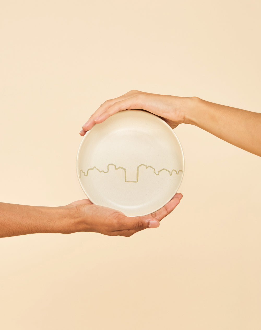We worked closely with the lovely Jaye at Argilo to create these amazing homeware pieces inspired by the skyline of Tropea, Italy. Each piece has been thrown on the potter’s wheel, then carefully turned and hand painted with coloured slip to replicate the beautiful town built upon the cliffs. Each piece has then been fired and glazed with a silky satin créme glaze which is soft to the touch.